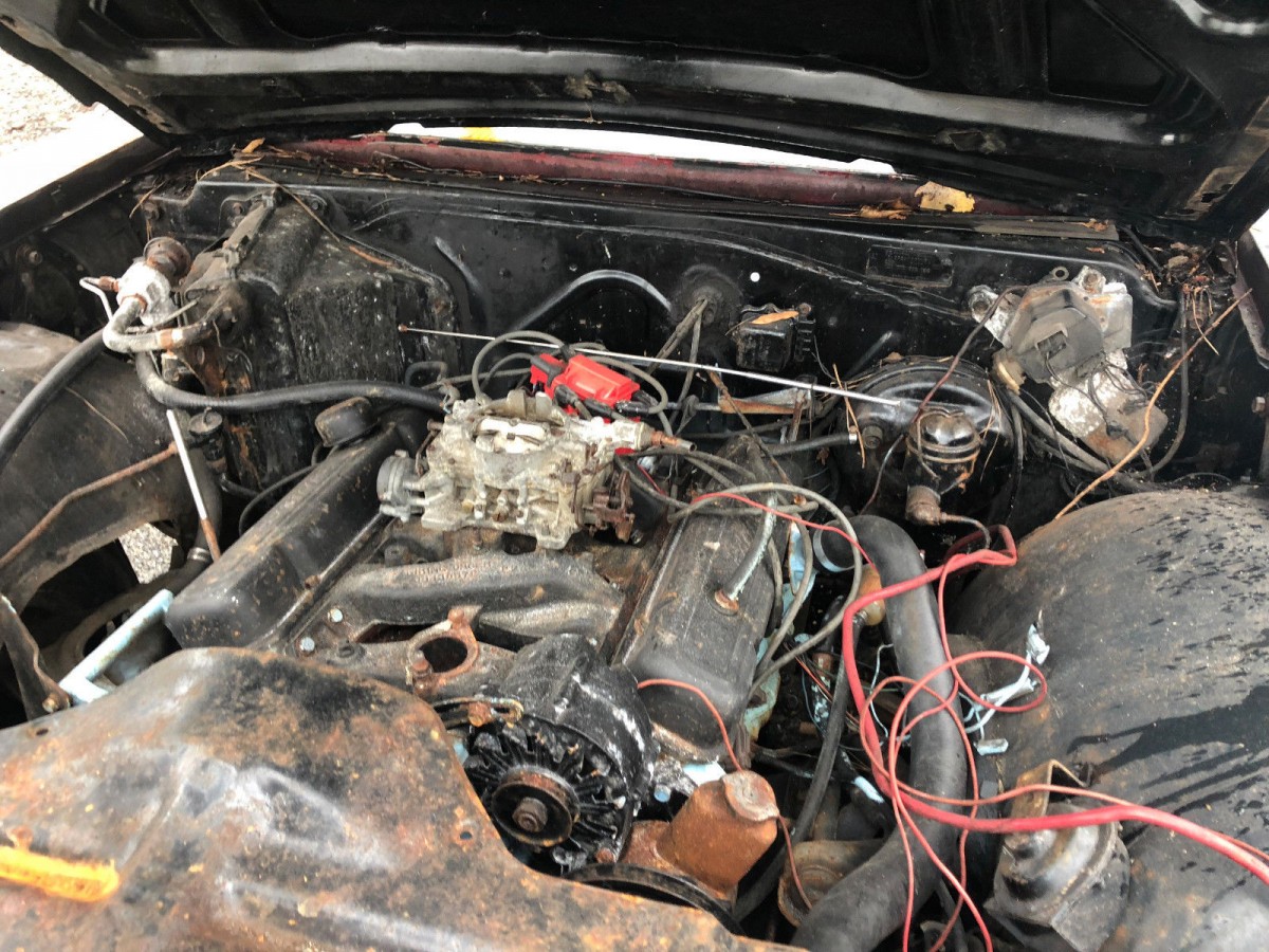 A possible proper 389 cid V8 inhabits the engine bay. It supposedly “does run,” but the buyer may consider re-attaching the radiator hose and thermostat housing currently positioned to one side. Connecting the fuel system to the carburetor before twisting the key may also pay dividends. Forensic evidence suggests that someone (probably under the age of 20) savagely attacked the engine compartment with cans of black spray-paint. Who can picture themselves buying this once-beautiful full-size coupe?
