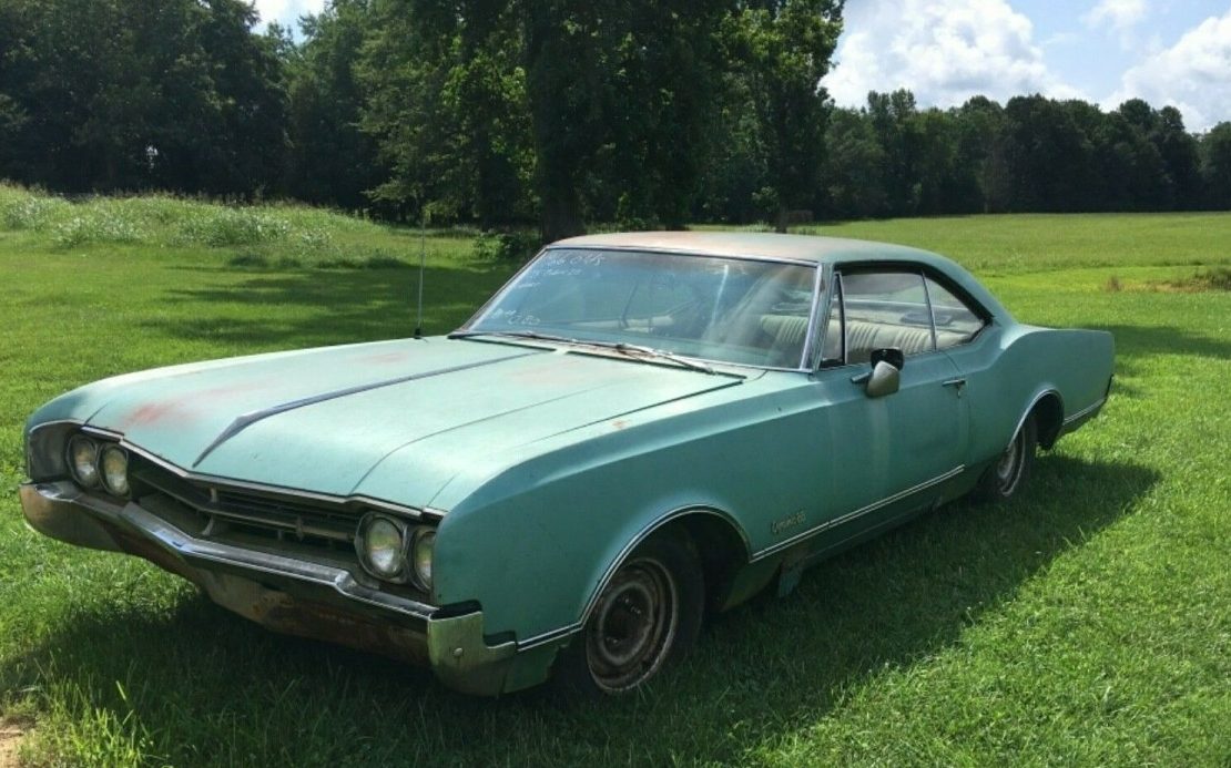 Outstanding in its field, this 1966 Oldsmobile Dynamic 88 in Alvaton, Kentucky seeks a new owner here on eBay where a paltry $1500 will make this barn-find beauty yours. Its black-and-white interior and big V8 would have given it show and go in its hey-day. Thanks to reader local_sheriff for spotting this full-sized tow-door hardtop.