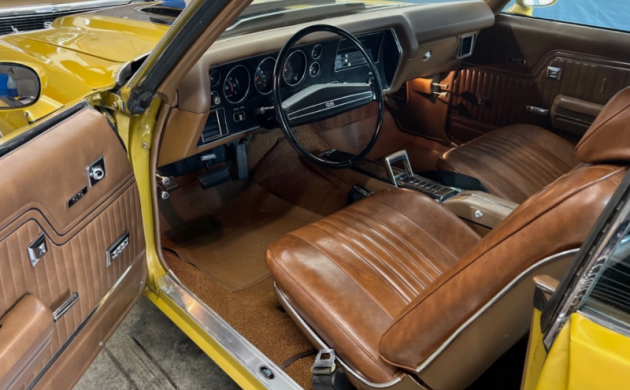 Usually, you would find a black interior in a gold SS, but this one has a buckskin-colored upholstery setup, which may take some getting used to. As was the case in those days, it takes a build sheet or MSRP sticker to confirm the authenticity of a real SS vs. a clone. What’s your take on this Chevelle? Originally an SS 350?