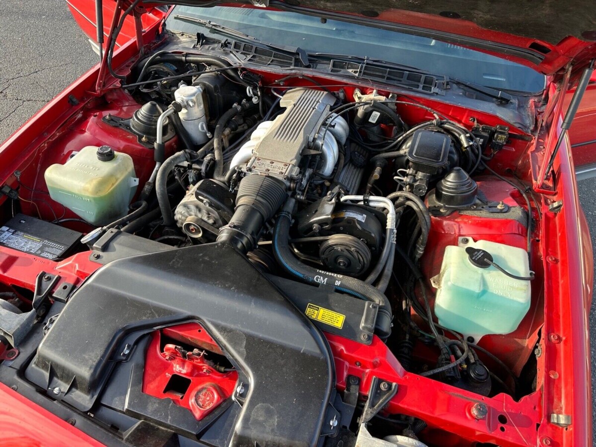 The Third Generation Camaro features striking styling, and although more than three decades have elapsed since this car emerged from the factory, Chevrolet succeeded in producing a vehicle that remains surprisingly fresh. This Z28 wears its original Code 75 Red paint that shines magnificently. The seller states that a close inspection will reveal watermarks from washing, but the paint condition remains 10/10. That is a bold claim, but I can’t identify any flaws or defects. The panels are laser straight, and a life spent stored indoors has helped it remain rust-free. The original owner selected the smoked glass T-Top, which looks spotless and shows no leaks around the seals. The decals are crisp, and the factory alloy wheels are free from stains and physical damage.