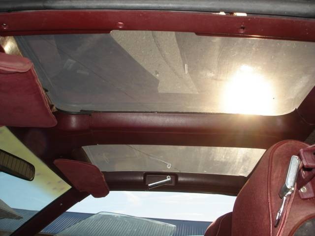 The seller refers to this car as a barn find, but as we know not all these cars emerge from a real barn. It’s said to be completely original and intact but must be trailered because the tires are ancient. Several of the photos were taken outdoors with shadows, so it’s hard to tell if rust is an issue with this car. But the driver’s side quarter panel looks to have an infection. The body looks solid with no obvious dents and the paint is faded. While a good cleaning and wax job would help a lot, the paint is thin in several places and the car is deserving of a respray. The T-Tops are a plus on the car and look good, but there are no references as to whether they are leak-proof.