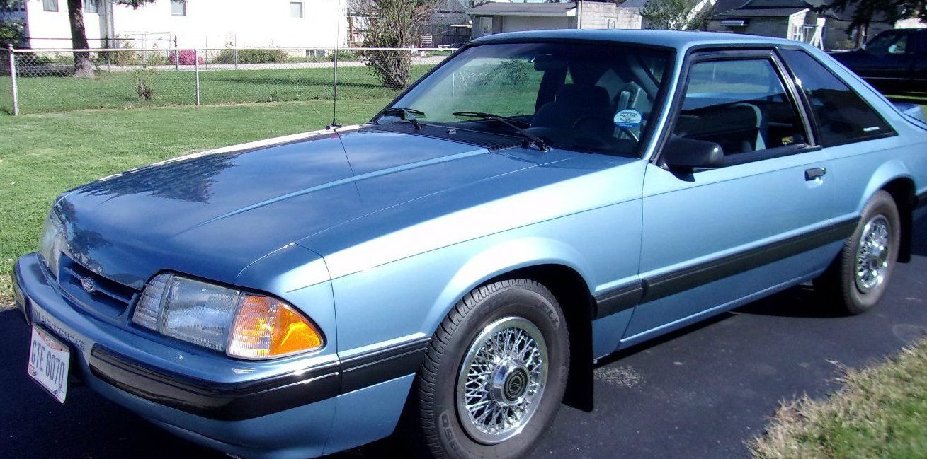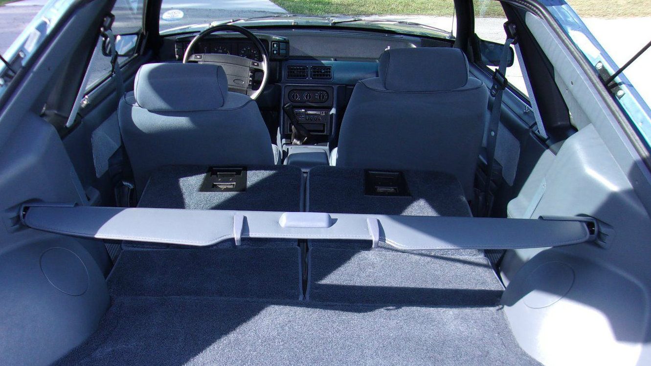 The trim looks outstanding and aside from some light warpage of the bumper cover (they all seem to do this), the Fox Body-survivor looks as it did the day it left the dealer lot. The integrated spoiler and clear/red taillights make an otherwise low-spec LX look a bit more aggressive, but the wire-wheel covers bring you back down to reality that this ain’t no 5.0. But, consider me surprised that the fastidious first owner spec’d it with a manual.
