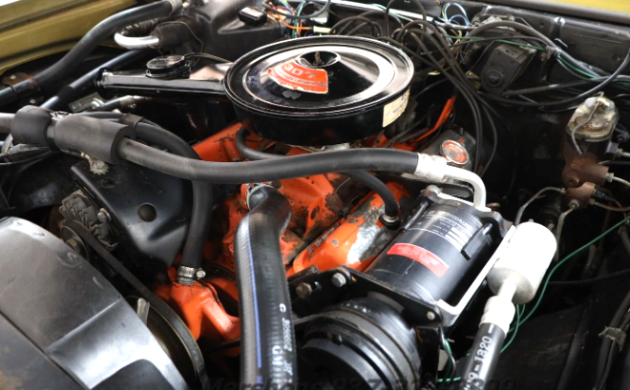The 1970 model year was the Nova’s third-best sales year to that point. And the first without any Chevy II badging, dropping its 1962 roots. 307,000 of them left the assembly line, and almost one-third of these cars had the basic small-block V8 displacing 307 cubic inches. We owned a Nova very much like this one in 1970 (kept it from new until 1981). This one is finished in Champagne Gold paint, while ours had the darker hue (and more attractive, IMO) Autumn Gold. Ours had a 350 V8 with a 2-speed Powerglide, while the shift pattern on this car tells us a TH-350 was installed at the factory.