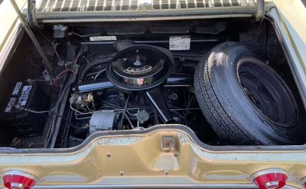 Under the engine cover is the base 95-horsepower 164-cubic-inch flat six bolted to a Powerglide automatic transaxle. Now’s not the time to get into it, but if you’re at all mechanically-minded, it’s worth your time to study how power delivery is handled in a Corvair; it’s a game of back-and-forth. By the way, some of the biggest Corvair stories are less problematic than you might think; for example, the Corvair doesn’t throw fan belts on every trip to the store (at least in my experience). I threw one early in my car’s ownership, and I soon learned that the trick is to set it up a little loose. I’ve had no problems since.