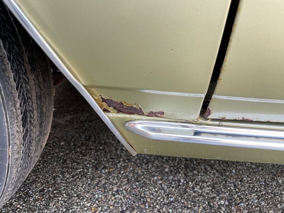 Because this is a Michigan car that was driven by its first owner until 1978, it is not rust-free; there is rust in the lower front fenders (like there is on most second-generation Corvairs), and you can see a little in the lower A-pillar in the picture above. Corvairs used “flush and dry” rocker panels that drained the cowl through the A-pillar, through the rocker, and out a flap in front of the rear tire. Unfortunately, water is not the only thing that got in: leaves, twigs, and dirt all drained down into the fender and created a nice sponge for soaking up moisture. Honestly, the corrosion on this car could be cleaned up, treated, and blended in, in my opinion. There’s probably no need to get too invasive (but you never know with rust).