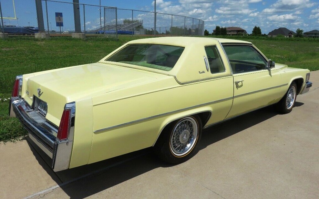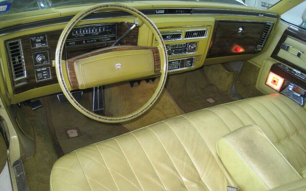 I’d like a closer look at the door arm rests. They cracked fairly soon. I had this same car in copper with a tan velour interior. After spending my entire childhood wanting a Cadillac I owned five before I was 30. The only one that didn’t have major issues was the ’63 Fleetwood I bought for less than $200 in 1973. My Coupe like this one would die at the same intersection every morning due to a cracked manifold, which was a common problem. It was my last ever Caddy, and I only bought one more American-built car after 1990. It was an even worse LeBaron convertible. But in spite of all that, I would still buy this yellow car because it is the color combo I always wanted. Go figure.