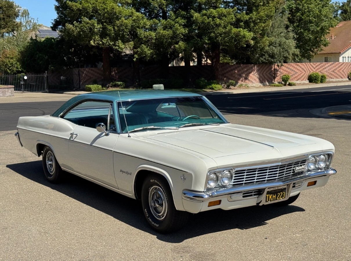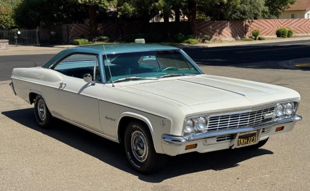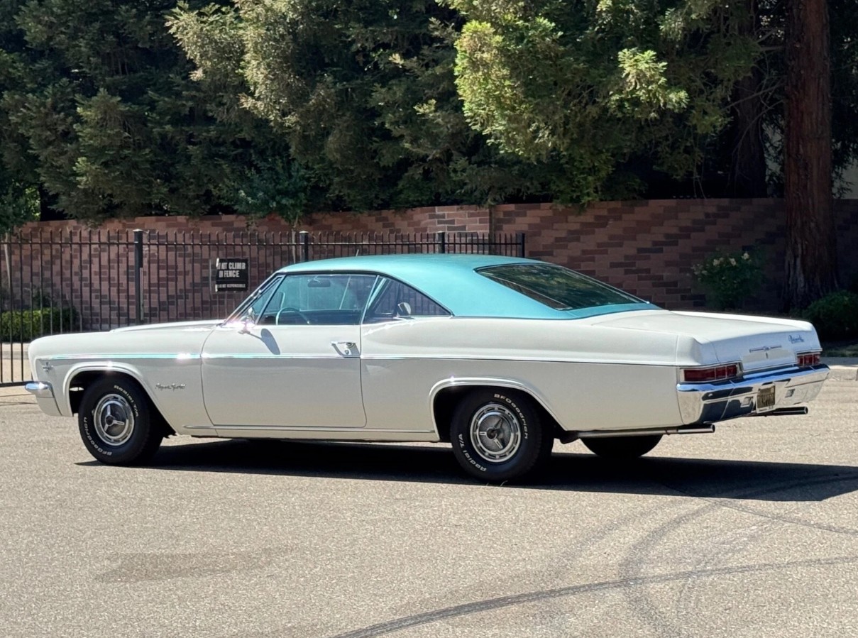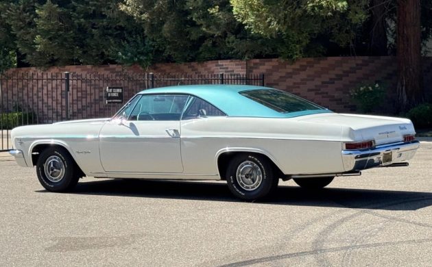 For my money, the 1960s marked a high point in vehicle styling. Pony cars were lithe and elegant, the Pontiac GTO was purposeful, and the original Buick Riviera was drop-dead gorgeous. I would add the Fourth Generation Impala to that list, because there wasn’t an ugly one in the entire range. This is especially true of the Sport Coupe variant, which commands more attention and affection today than it did when it was blowing them away in the showroom. This 1966 Impala Super Sport is no exception, ordered by its first owner in Ermine White and Artesian Turquoise. The seller is only the second owner of a black-plate survivor that has spent its life in California. Therefore, its rust-free status is unsurprising. The paint shows no evidence of major faults or deterioration, and the panels are straight. The first owner ordered the car with clear glass and a tinted windshield, and these look to be in excellent condition. The trim sparkles in the sun, and the Impala retains its original steel wheels and ‘spinner” hubcaps.