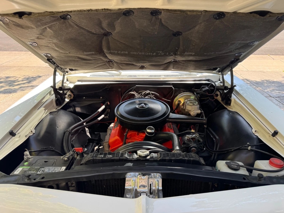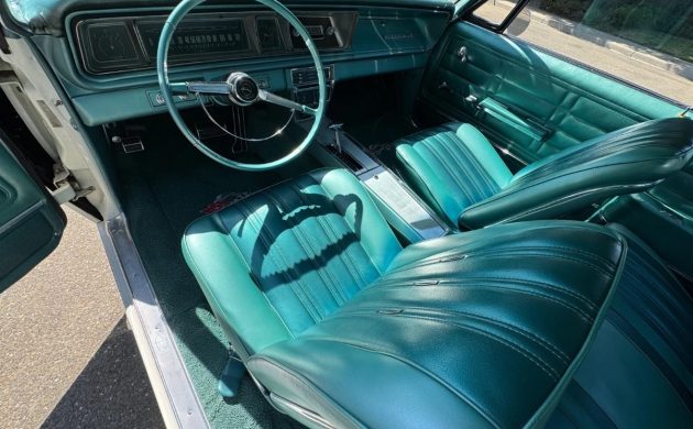 The Turquoise theme set by this Impala’s exterior continues inside, with the seats and other upholstered surfaces trimmed in vinyl of that shade. Once again, there is little to criticize, with no wear or evidence of abuse. The lack of deterioration suggests that the car has been protected from long-term UV exposure, with the pad and tops of the door trims looking excellent. There are no visible aftermarket additions to an interior featuring bucket seats, a console housing a sports gauge cluster, and an AM radio.