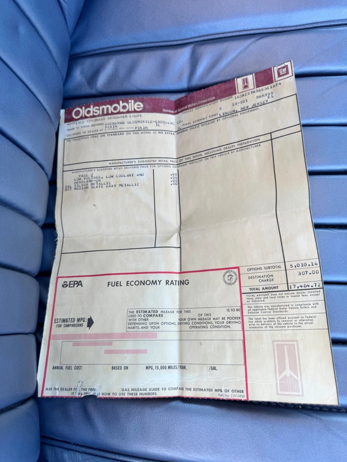 If you plan to drive your new 45-year-old Toronado, however, you may want to do something about the ancient Uniroyal whitewalls that are currently on the car. It’s possible that they are original, and it scares me to even look at them. How much longer will they hold air once they’re exposed to UV rays, ozone, and the like?