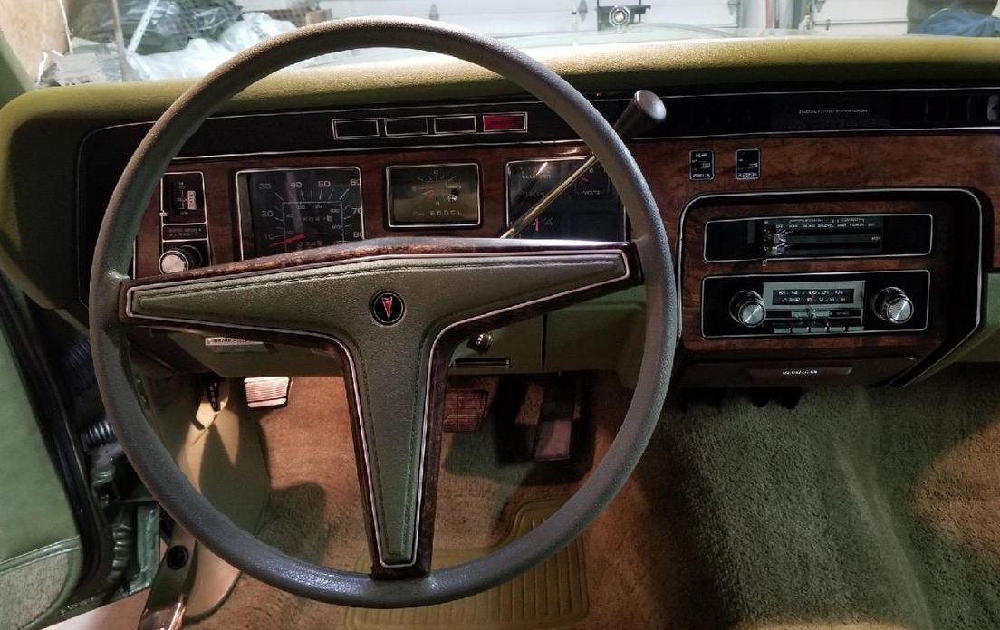 The interior shots are a bit frustrating, but as you can see from this shot, the dash appears to be original and unmolested, and there is no wear on the wheel rim that would be a great indicator of high mileage. The rest of the interior presents exceptionally well, and while it is never stated, I have a feeling that this wagon is fitted with a third-row seat. The air of luxury is evident in this car, as almost every available option is brought to bear to make every trip as comfortable as possible. As well as the previously mentioned A/C, you get power seats, power windows, power locks, and cruise control.