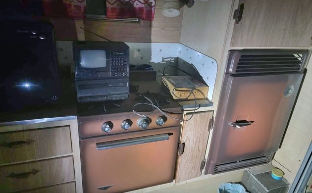 This era of Dodges are amongst my favorite. I love this camper, matching faded red stripe and all. Those appliances ( fridge and stove) look original. I’d personally love to see this stay together as a set. Like they most likely have been for the past several or more decades. Wouldn’t it be nice to see them both restored to as original? I think it would anyway.