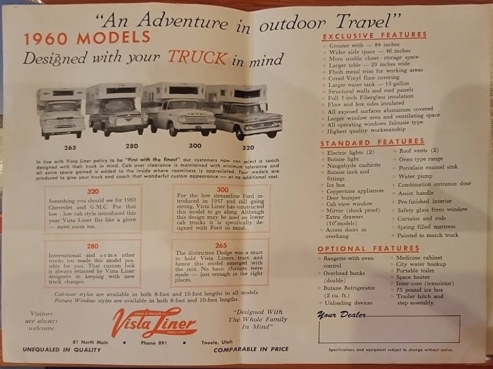 This is the only photo inside the camper. I know, again. As with everything else, though, it looks surprisingly nice from what we can see. Vista Liner made 8-foot and 10-foot pickup campers in this era, and this is the latter. At 1,375 pounds, you’d likely not even notice this load on the back of this big truck. I believe this is either a model 300 or 320, but we don’t know for sure. The seller says this rig has 18,000 miles, and it looks like that could be accurate. It runs and drives as it should, so that’s great news! It also has a rebuilt starter, a new clutch and slave cylinder, and new clutch and brake master cylinders, new wheel cylinders, new battery cables, and new tubes, along with used tires on the original wheels. Any thoughts on this big Dodge and Vista Liner camping combo?