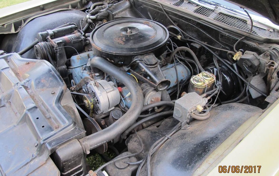 The engine and environs look a little dirty, but still pretty nice and original for 49 years. It should clean up nicely. That could be one of 5 engine choices, from 389 up to 455.