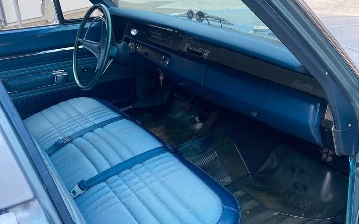 The blue interior and exterior look great. The 318 and Torqueflite are perfect for a family type car. Not sure if there is air conditioning or other options on the car. Working A/C would be a plus. I love the headroom on the older B body. I would ask for proof on the mileage claim and a 3rd party inspection. Today’s cars have sharply raked windshields that cut headroom. There are too many electronic adjustments just to get a radio station. More stuff to fail. So it appears to be a good practical car for its age.