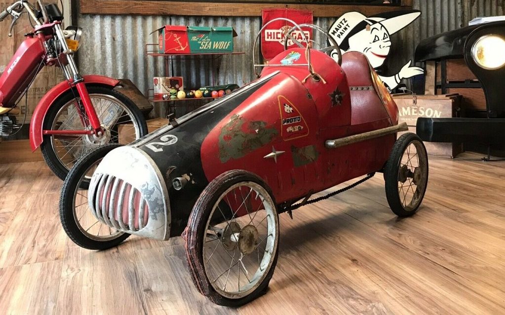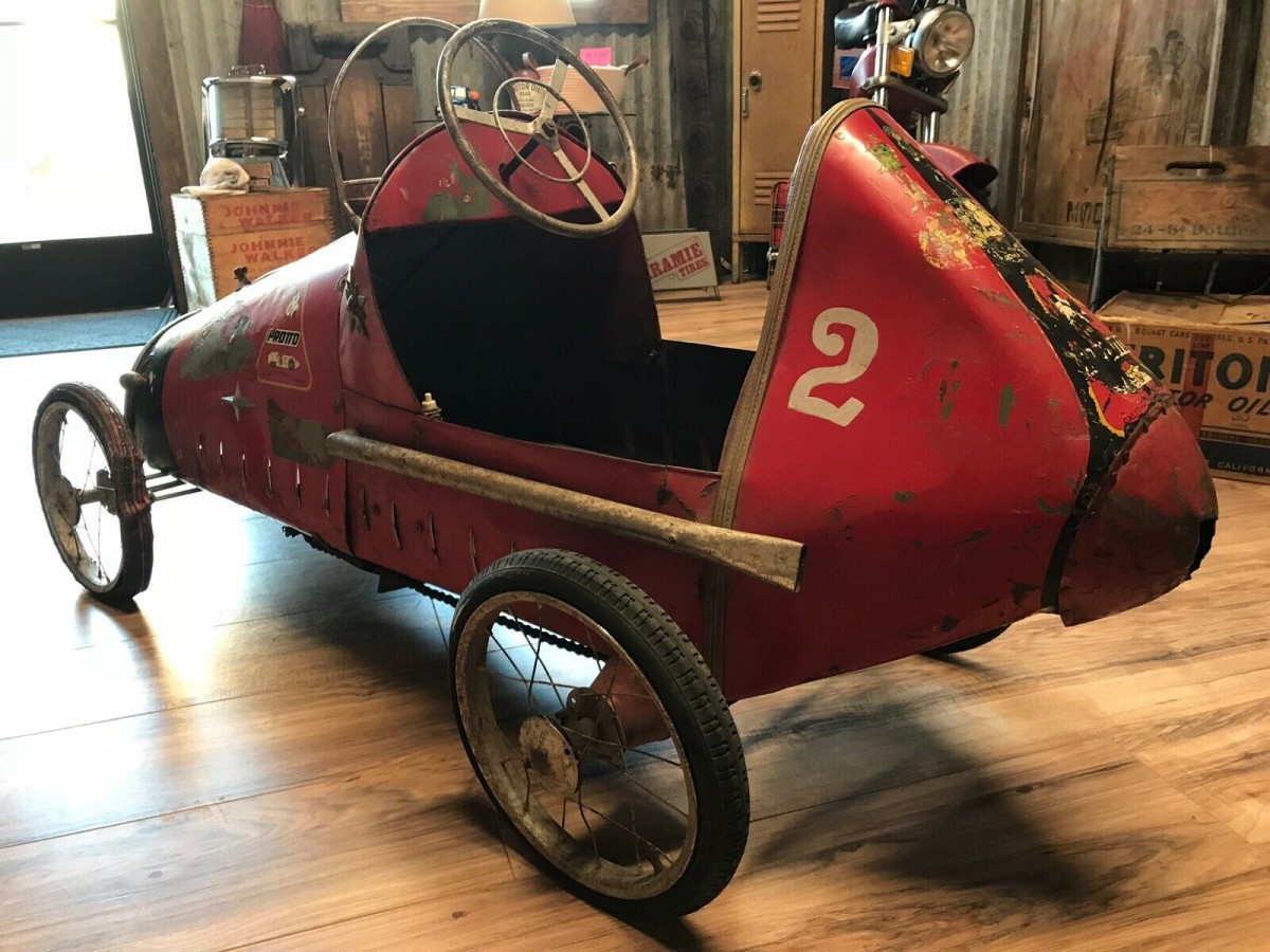 The car has a really cool look including a hand-formed grille and boat-tail rear end. The side exhaust is a nice detail as are the body louvers, graphics, and trim. So, what do you think about this car? Is it worth the near $4,000 asking price? If you want to learn more about pedal cars and their history, check out the article here from collectorsweekly.com.