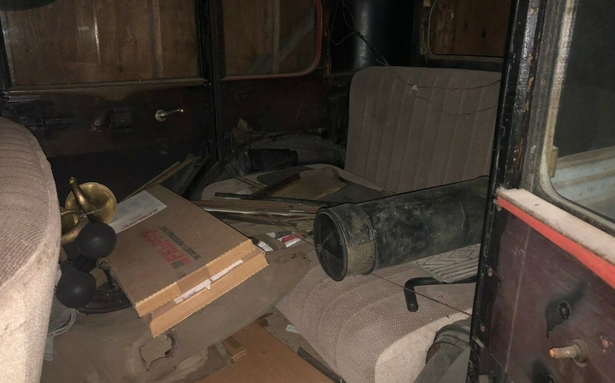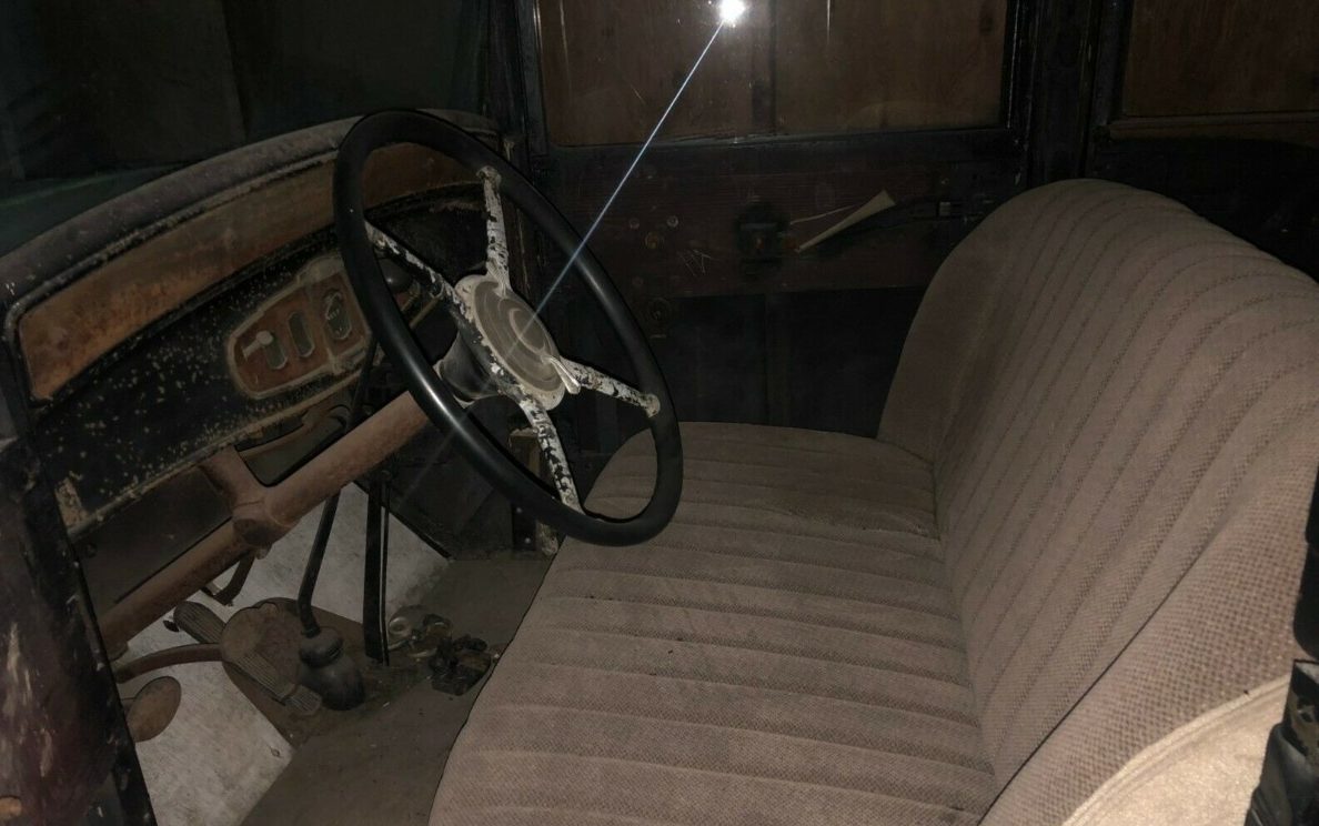 Here you can see the driver’s compartment looks fairly original. The ad does say that it has a “brand new canvas roof and seats.” I’m not sure if that means it has all new seats, upholstery, or just seat coverings?