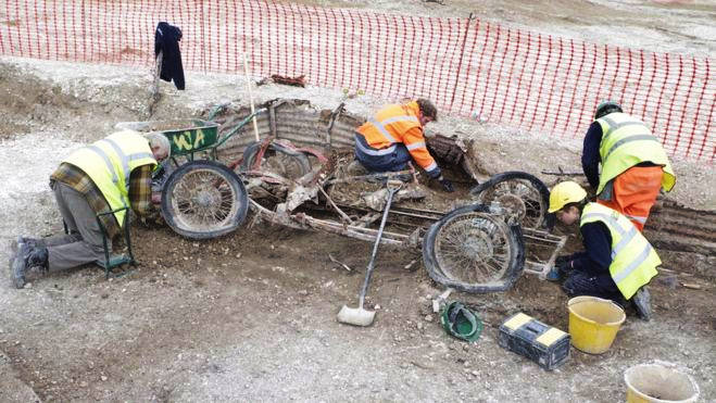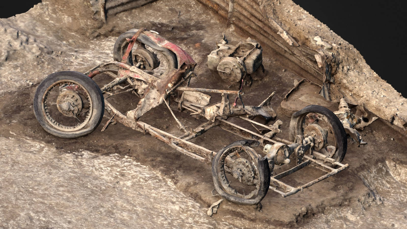 We’ve often talked about how discovering a barn find is like uncovering a little bit of history or in some ways it’s like being an automotive archaeologist of sorts. Well, in the case of this 1932 MG J2 it really is auto archaeology as it was discovered buried in the ground at an old military base on the Salisbury Plains of England. It was just recently uncovered by actual archaeologist who were surveying a World War II artillery position turned weapons dump site in preparation for new development at the base. While there isn’t much left of the car, it’s still sitting on its original wire wheels and even manages to support its own weight. Special thanks to reader Scott S for this tip!