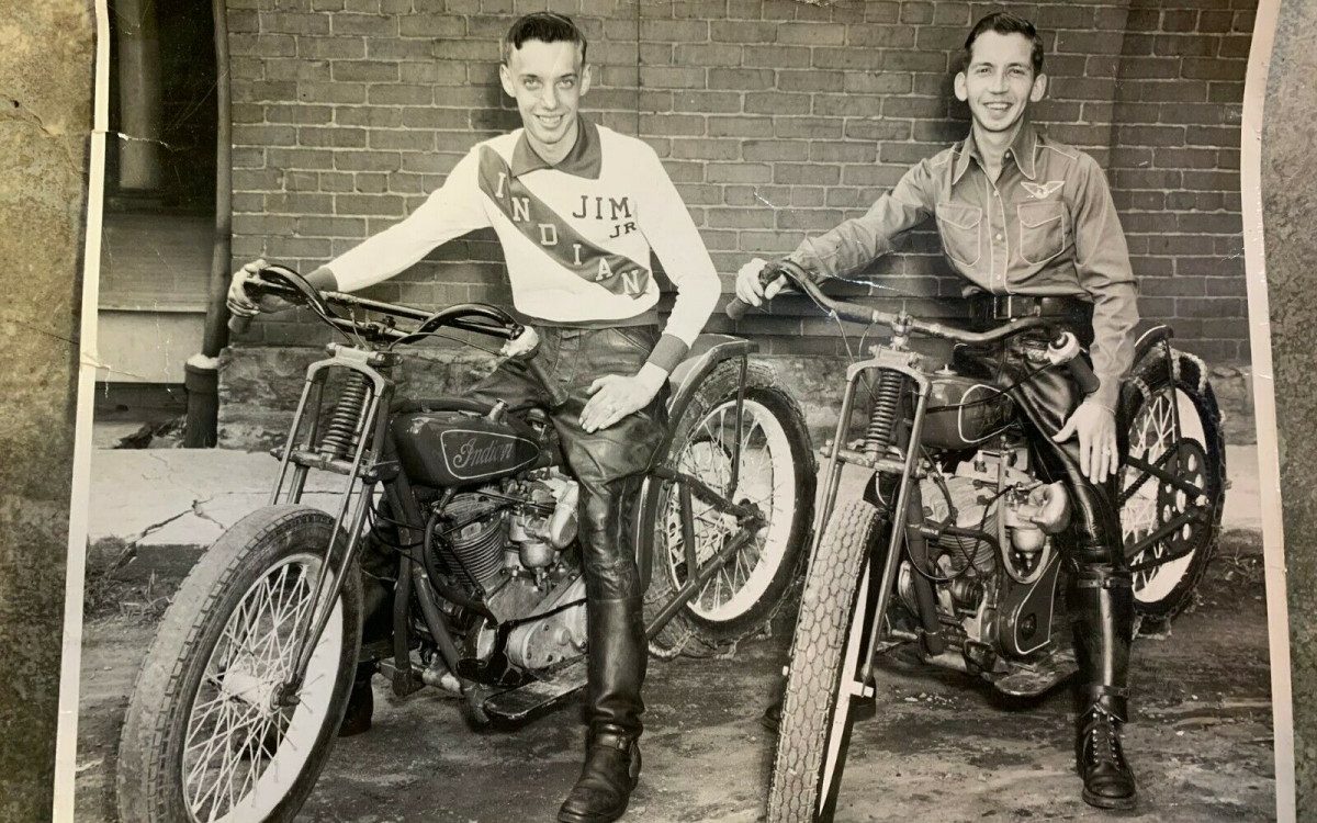 As you can see in the first photo, there is a ton of documents and photographs to back up the history of this machine. The owner was Jim Raupach from Akron, Ohio and the bike was purchased from his family in 2006. It appears this bike is the one on the right in the photo above. Notice the handlebars and rear sprocket. I’m guessing that it may be Jim Sr. and Jr.? Along with the posed photos, there are also some action shots from hill climbs as well along with Jim’s nameplate and competition license from 1958!
