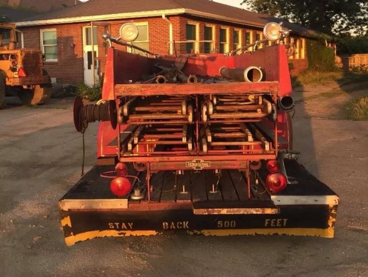 This would be considered a city service truck also equipped with what appears to be a 500 GPM pump. The wide shallow bed on top of the ladder racks is for carrying fire hose. These were most commonly found in small communities where equipment and manpower was in short supply. Ladder trucks are the step children of the antique fire apparatus community because of their size and the obvious storage problem. I work in the shop at the Nassau County Fire Museum and a while back a fire department that had held onto their 1941 Seagrave tiller had to give it up due to space limitations and we were fortunate to squeeze it into the museum. This may be the case with the seller, a department that may have bought it new or as a restoration project for the members and reality caught up.