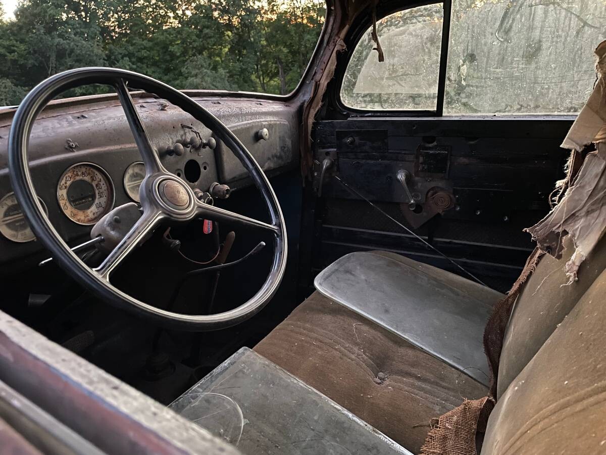 Overall, the body looks fine and wears red primer in most places. A couple of spots have previously been patched up with some filler that the buyer may want to revisit. There is some extra glass to remedy the lack of a windshield or back glass and the back seat is still there, but without upholstery (just a frame). The headliner is long gone, but where wood was used, it’s not bad for the age. That part suggests this could be a Master Deluxe. At 60,000 miles with a clean title, this old girl is waiting for the next step back to the real world.