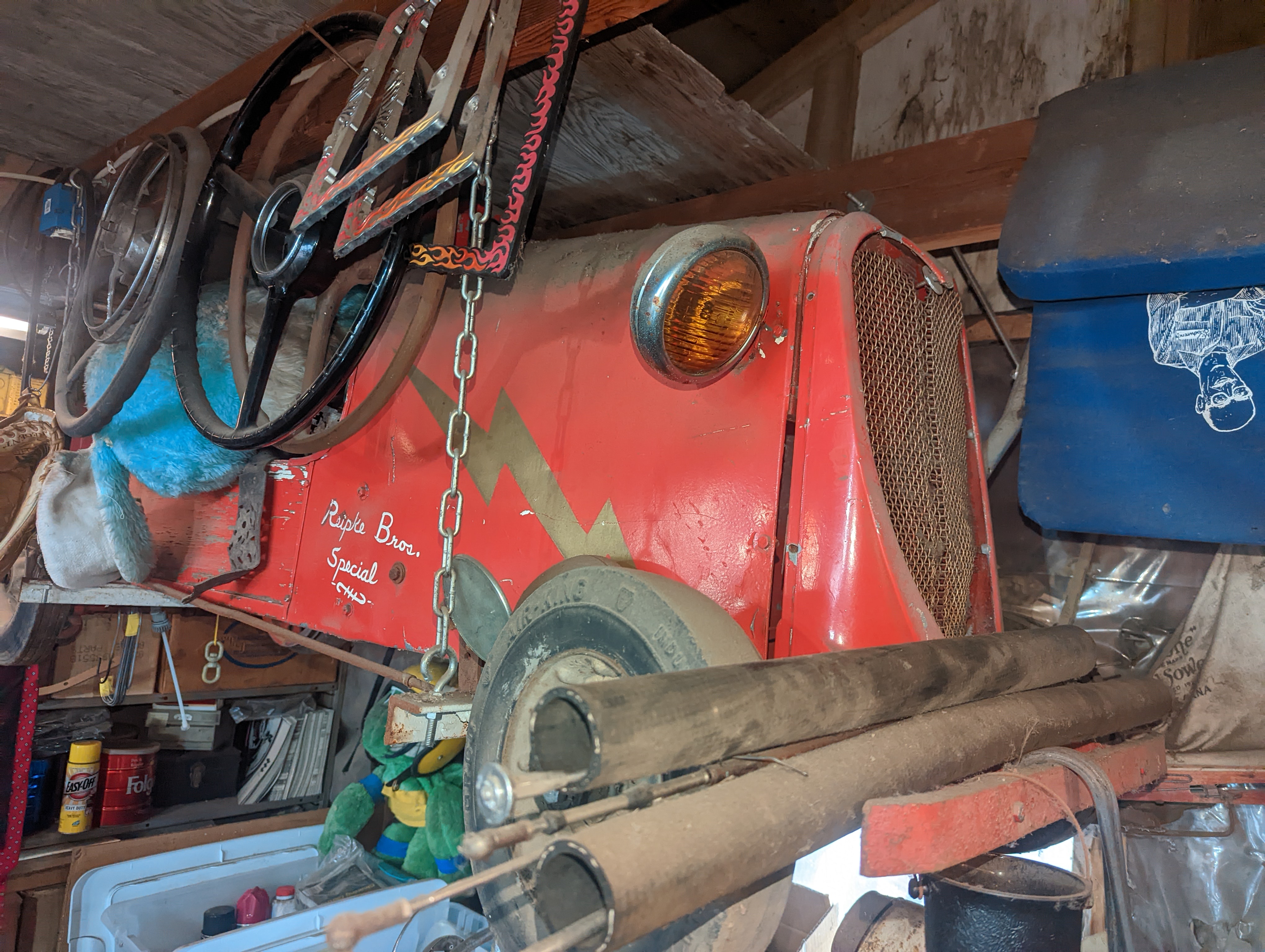 My brother gave me one he found in an old shed. It’s pretty beat up but still has the cast aluminum grill and cast steering wheel that says Maytag. 2 of the wheels are original. I saw a nicely restored one at a tractor/steam engine show. The owner was part of a Maytag racers club and when I showed him a picture he said ” now we know of 34 of them”