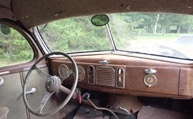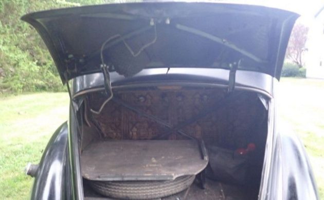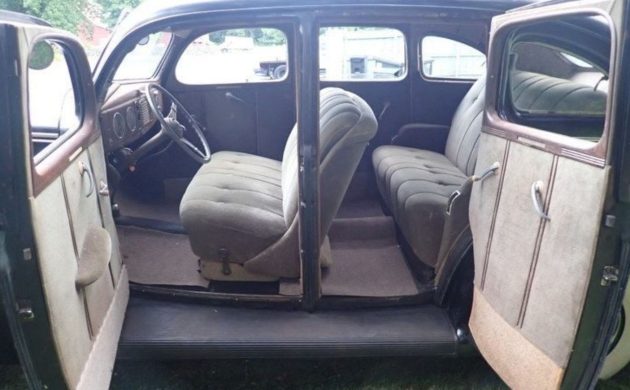 Rather than strip and repaint the car, the seller chose to preserve the existing finish—believed to be original—by cleaning and applying “Patina Sauce” to bring out the depth and texture of the aged paint. The plush interior is mostly original, with a new headliner and carpets sewn from matching material. While the radio doesn’t work (it’s included), all gauges are functional, the horn honks, the lights and clock work, and even the 6-volt wipers give it their best effort.
