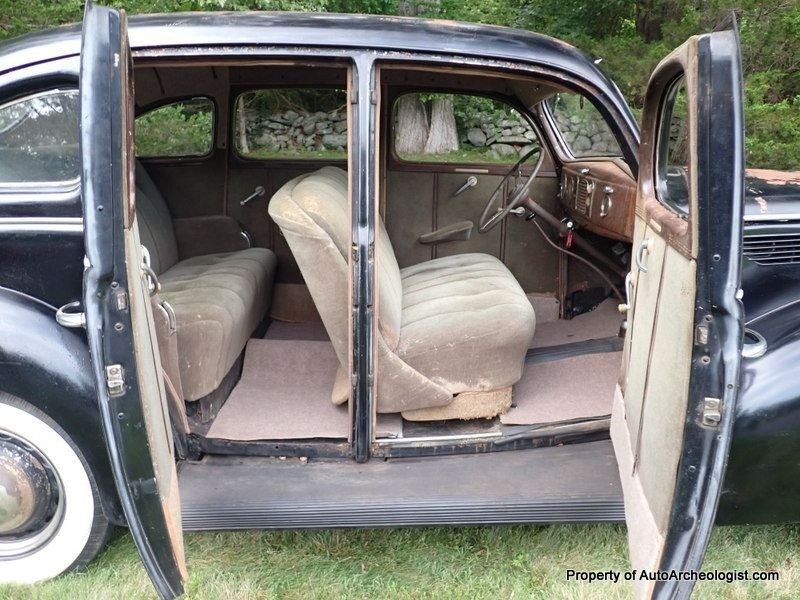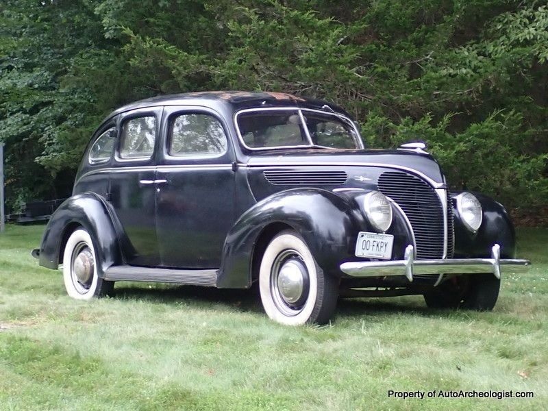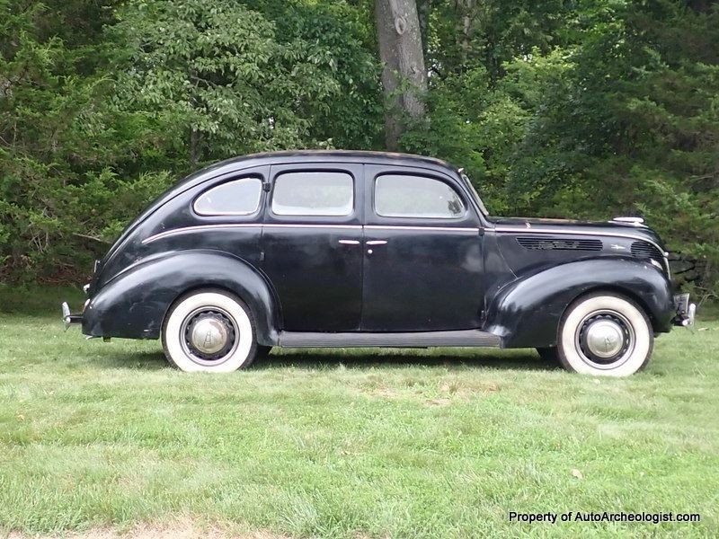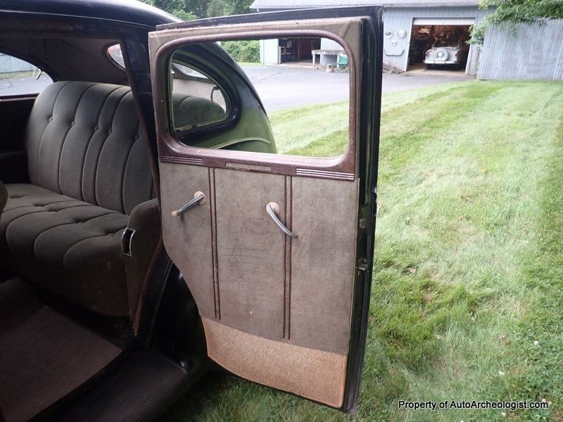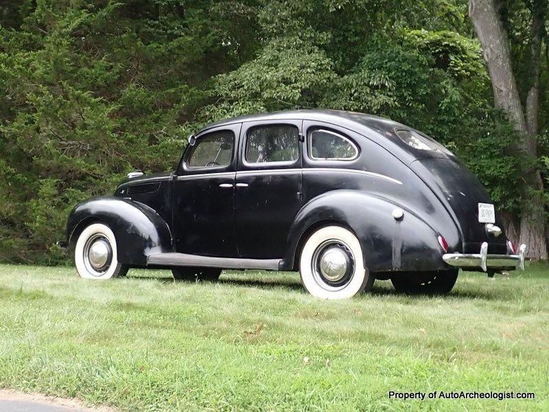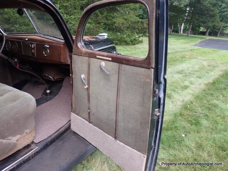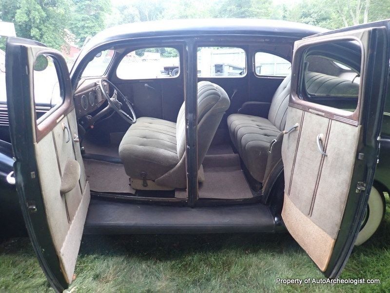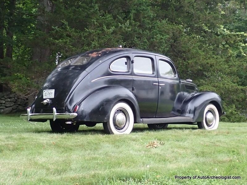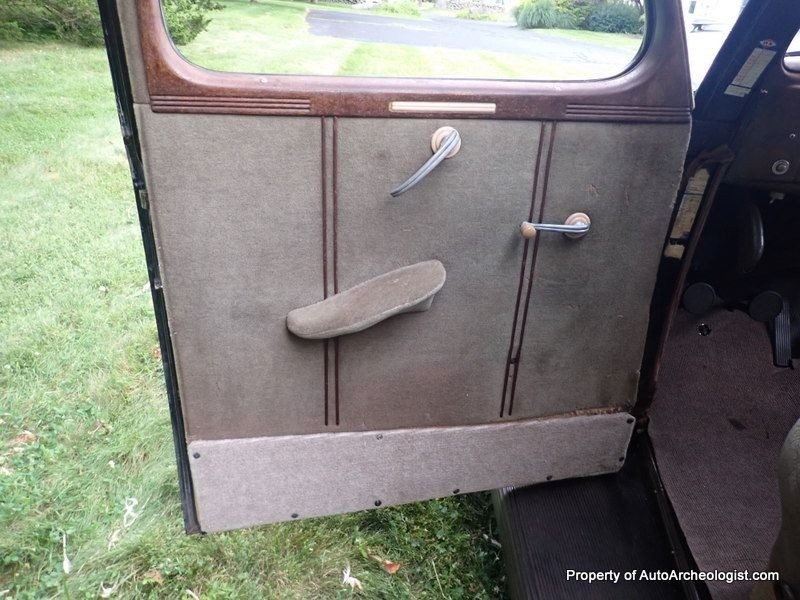 I have always wanted one of these, because I love the LOOK of the ’38 Ford Deluxe. The Standard was a warmed-over 37, whilst the Deluxe had the new body that went through 1939 and 1940. White walls were available for the Deluxe in 1938, but not usually for the Standard. The Standard generally came with just one tail-light. The wiper-motor, if original, is a vacuum unit, and it is fine on the level and while going downhill; but when climbing any significant uphill grade, the wipers would stall. Ford sold an accessory vacuum-tank to hold vacuum on hills, and it worked. This car cries-out for the accessory rear fender skirts. I did not see a price with it! And this one is by far at its most beautiful with four doors!! The ’38 came with mechanical brakes: “juice” brakes finally came to Ford in 1939.