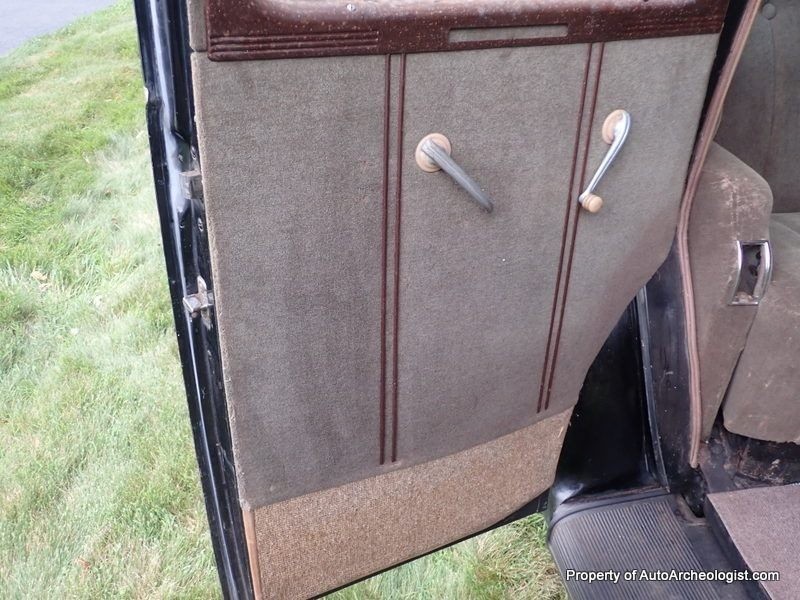 Rather than strip and repaint the car, the seller chose to preserve the existing finish—believed to be original—by cleaning and applying “Patina Sauce” to bring out the depth and texture of the aged paint. The plush interior is mostly original, with a new headliner and carpets sewn from matching material. While the radio doesn’t work (it’s included), all gauges are functional, the horn honks, the lights and clock work, and even the 6-volt wipers give it their best effort.