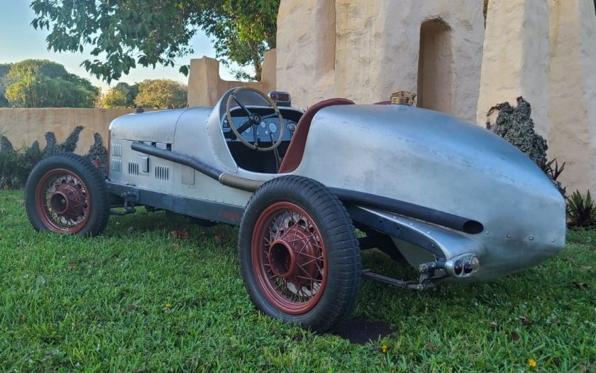 It’s not stated if the design of this two-seat roadster is based on any specific car or perhaps just a period open-wheeler. The body is hand-formed aluminum and according to an Antique Automobile Club of America forum, it’s believed that the chassis has a Chevrolet origin. Perhaps so, but the fabrication looks more one-off than a redeployment from an existing model – a question worth asking. The coachwork is impressive in its simplicity – it’s hardly a refined custom, more of a single purpose, functional application.