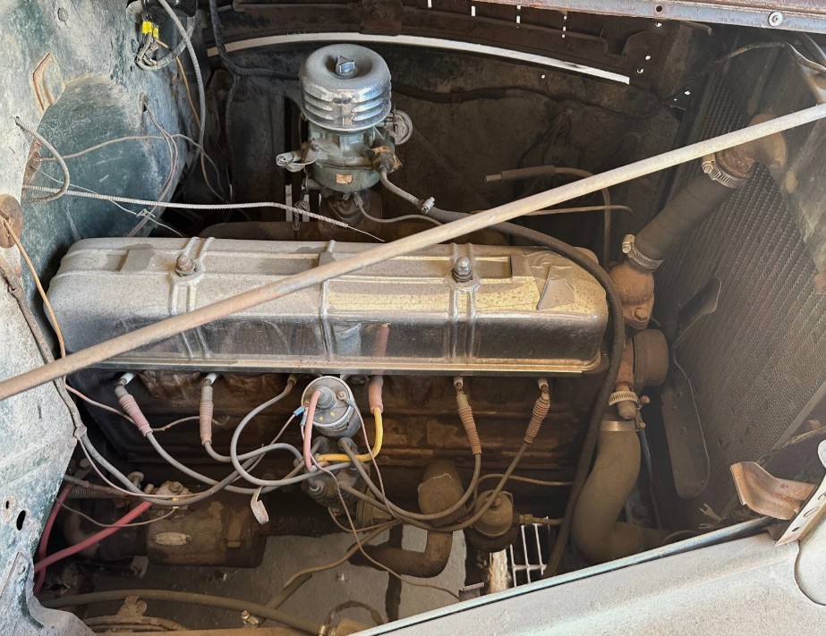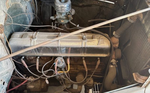 This example is one of the very few I found that have not yet been modernized with newer components and an ornate paint job. The factory engine was Chevrolet’s 216.5 cu. in. six cylinder making about 90 hp, paired with a three-speed manual. The brakes do not work, and a motorcycle gas tank stands in for the original, which needs to be replaced. The seller notes that ten years ago when he purchased the car, it ran well enough to back off the trailer, and he drove it two blocks to its parking spot, pumping the brakes when needed. It has not been started since and was trailered to its current storage spot. It’s actually pretty dry underneath, though surface rust affects most components.
