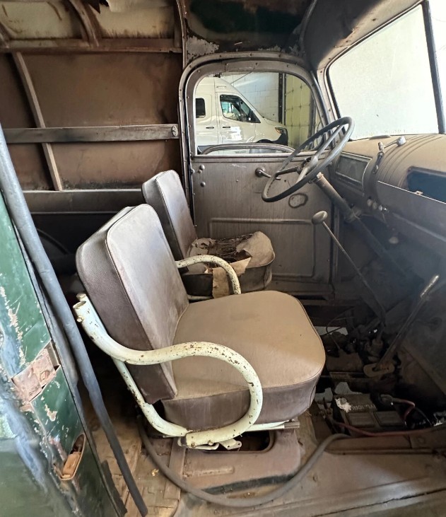 Not a lot of these left. They were used up and discarded. This one is worthy of a driver-quality restoration and then be DRIVEN. I would guess 4.11 gears, that will keep you down to 50 mph but will still allow you to keep it in high for the average hill. The driver’s seat suggests that someone must have encountered some wild chili in the past. The first thing you would need to do is fix that seat…