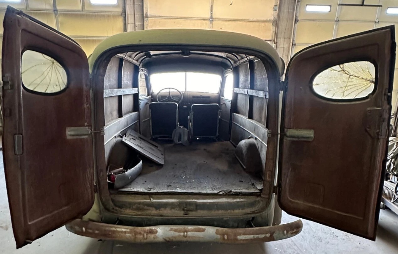 I believe that this is actually a 1946 Chevrolet Panel Truck, as opposed to a Sedan Delivery. Apparently, it is a common misidentification, based upon a quick internet search. The grills and headlights are different. The interior photo looks like a panel truck- I had the same year Dodge equivalent of this vehicle. It’s a great find and a lot of work, but it would be great to get it cleaned up, running and safe, leaving the existing cosmetic condition as is.