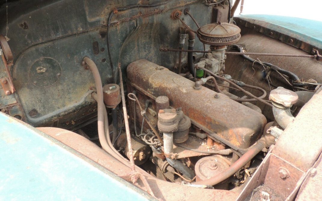 This truck may or may not have been used in farm service; without a rear bed, there is no way to tell what its purpose in life was. The seller states, “ENGINE & DRIVE TRAIN SOLID. DO NOT KNOW IF VEHICLE RUNS. AS-IS! AS-IS! AS-IS! AS-IS!” Well, if it is not known if it runs, it’s tough to make a claim about a “solid” engine, which should be a 90 HP, 216 CI, either a 248 or 270 CI, in-line, six-cylinder prime mover, the listing does not state specifically. It doesn’t appear to have run, however, in many moons. You gotta love the mileage statement, “MILEAGE NOT CONFIRMED, MAY BE MORE, ODOMETER READS 24995”. I’d bet on the “may be more” part. But hey, it’s got a newer muffler!