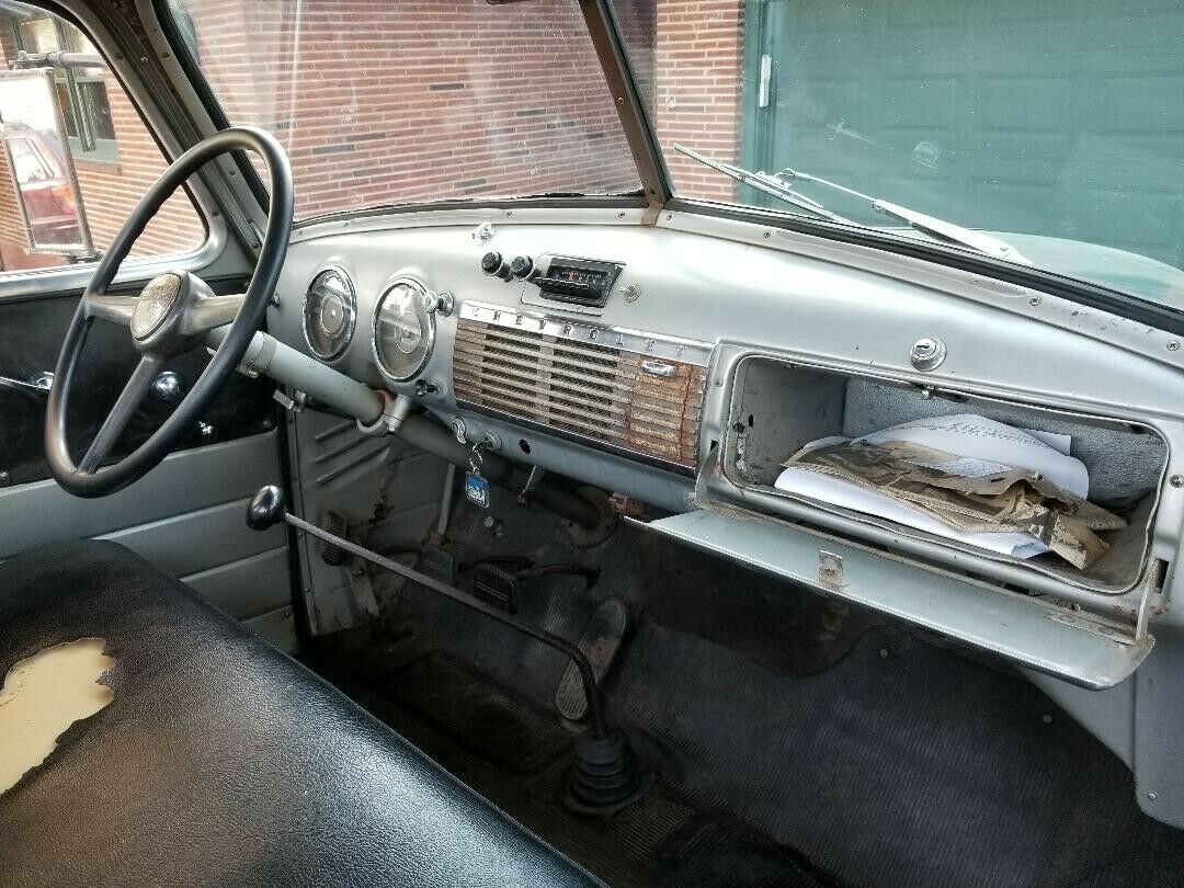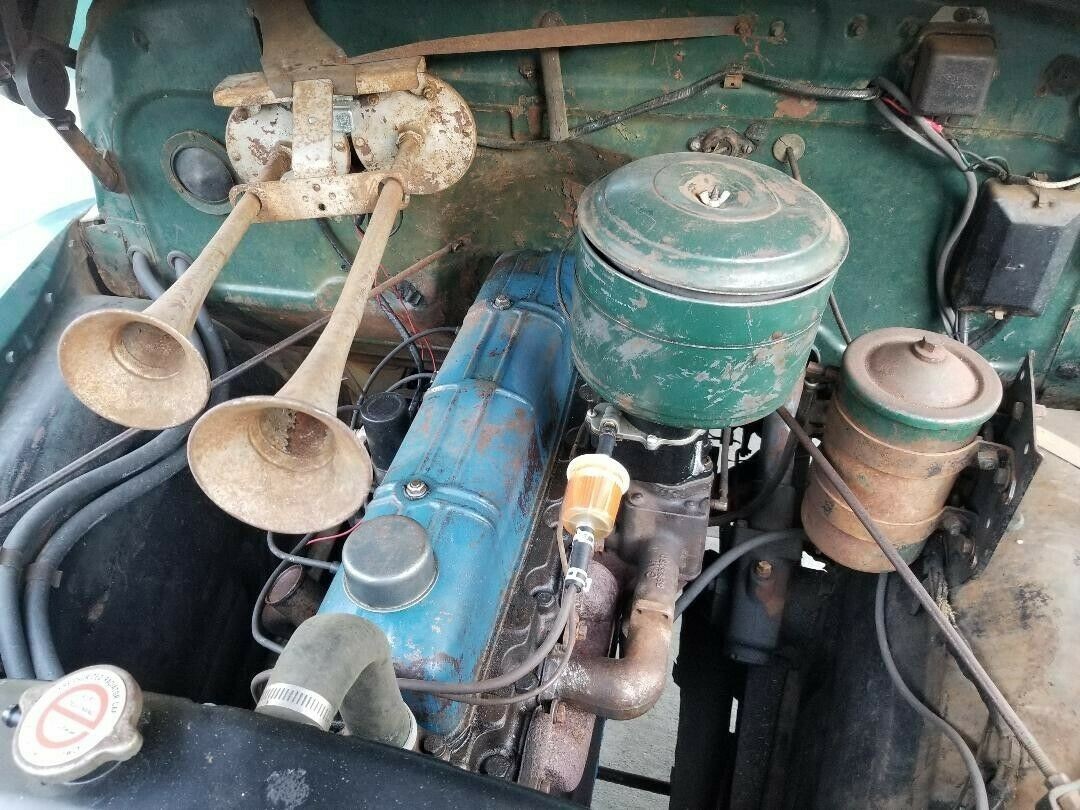 We’re told the mileage is under 20,000, but that could easily be 120,000. The truck is powered by a 216 cubic inch inline-six paired with a floor-shifted manual, which could be a synchronized 4-speed. And dig those big horns! The truck is said to drive and stop as it should, running smoothly and quietly. The brakes have been refreshed except that the emergency brake cable needs adjustment. The electrical system has also been upgraded, from 6 to 12 volts. The electrics like the lights and heater work and the optional Delco radio appears to reside in the middle of the dashboard. The seat will never recovering, but that’s no big deal.