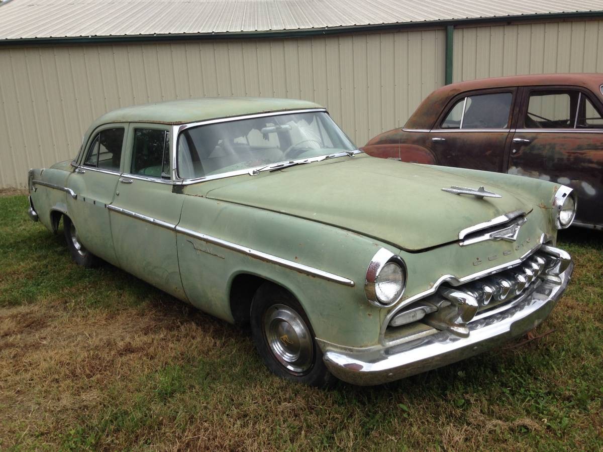 As best as I can tell, this is a 1955 DeSoto Firedome sedan. Although the Firedome was the entry model for 1955 DeSotos, it still featured V8 power and most came with automatic transmissions.