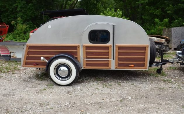 This duo strikes quite a charming figure. From the pontoon styling of the Packard to the matching woody panels on the tear drop, this pair would make a great addition to anyone’s collection, or the cornerstone to a new one. The combination of navy blue paint with birch and mahogany paneling, set against wide white walls, creates a smart look. We don’t get any details on the mechanical condition of this car, but if it’s anywhere near the exterior condition, everything should be ok, as those Packard straight eights run like sewing machines. While the details are scant on the Packard, they are even more so with the teardrop. But this little camper appears to be in great condition as well.