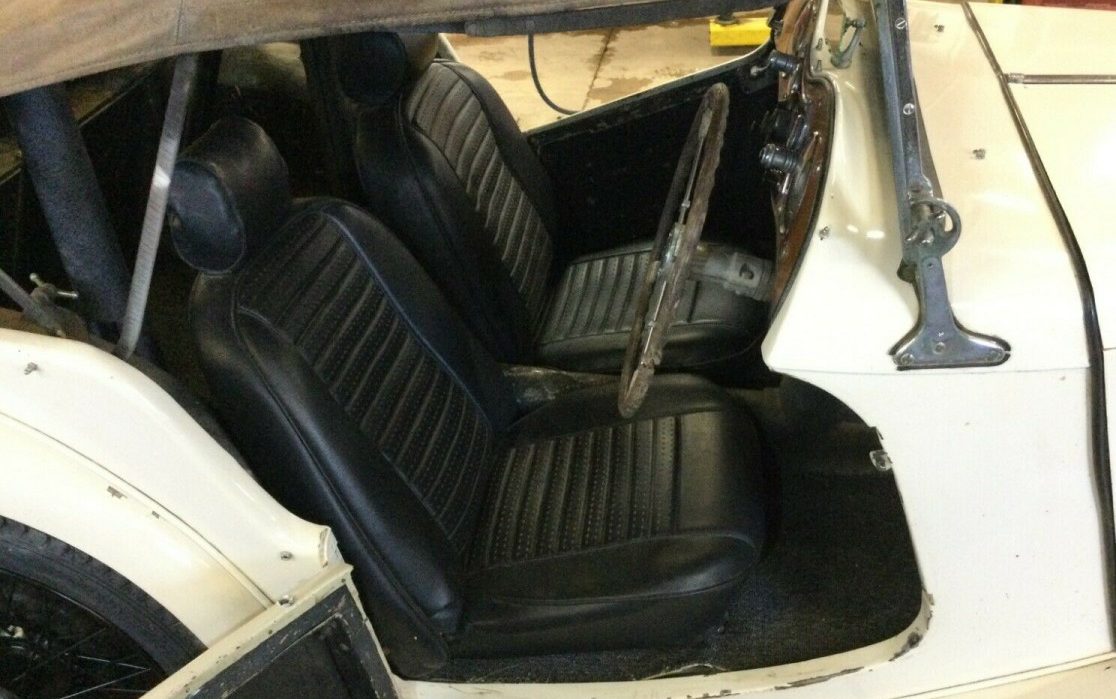 Best I can tell, it’s a Right-Hand-drive car, unlike claimed. How odd to have installed modern seats. Looks like a good one to start a full re-build. I have a TB, looks very much like this.