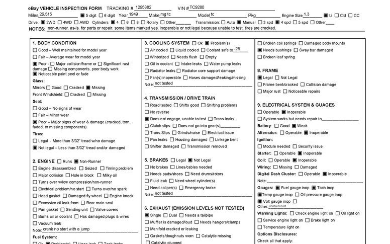 Unfortunately, modern condition reports are useless with an old MG. 85% of the problems are because it does not run and there is no working battery, so little can be tested; the body is called “poor” because of the flaking paint, with no mention of the wood condition, which is the TRUE indicator of a poor body. This is a typical $8-10k TC right now, no more (I have sold 2 in the last few months below $12,5k); the amount of dirt and grease on the underside suggest years of neglect, so I suspect pretty much everything will need attention. I doubt the trans is frozen; all the lines and hoses need replacing, but they are easy – the inappropriate report makes the car look worse than it is. All parts one would need are are available from Abingdon Spares in CT, or From the Frame Up in Mesa, AZ.