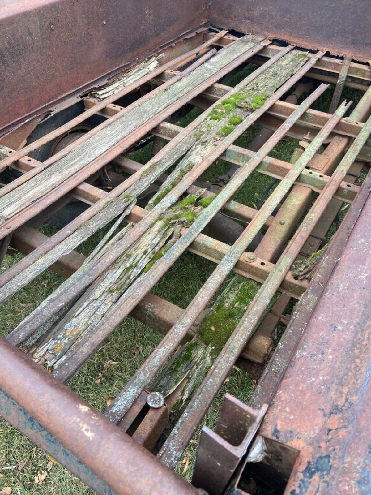 There are many kits on the market to completely replace the wood bed and metal strips; this was one that I found for only $370. The underlying metal looks completely solid, which is great!