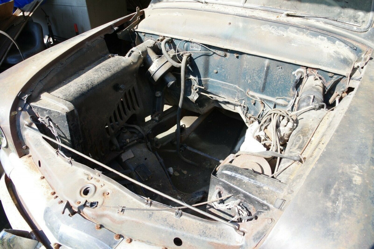 Under the invisible hood resides no engine or transmission. They were pulled at some point but will come with the car along with a second flathead V-8. We’re told the original engine block has bee machined and has new bearings and rings. But the seller isn’t sure is if its all there and what else must be done before putting it all back together.