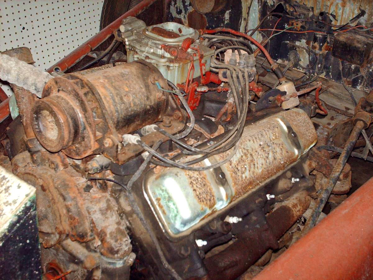 a ’49-’52 Olds 303 cube V-8 while the painted one is a ’53 324 cube engine rated at a respectable 150 HP. The frame and suspension components