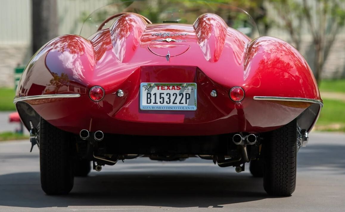 During September 22-24, RM Sotheby’s will offer at auction some 1172 lots comprising the entire Gene Ponder collection of automobiles and automobilia. Gene Ponder, a Texas kitchen cabinet entrepreneur, has turned eighty and decided it’s time to start “taking life seriously“. Here at RM Sotheby’s, lot number 3151 is a 1952 Alfa Romeo 1900 “Disco Volante” Spider recreation. This car will be offered at no reserve, with an estimated price between $175,000 and $225,000. The auction will be held in Marshall, Texas. Thanks to Araknid78 for this exotic tip! Documents show that the work to create this car began in 2017 with the purchase of a Jaguar XK150 chassis. The chassis number of the Jaguar appears to have been assigned to the recreated car, so it is titled as a 1959 Jaguar. Power is supplied by a 3.4 liter, six-cylinder, double overhead camshaft XK140 motor, accompanied by three very non-British Weber 45 DCOE carburetors. The body was made of hand-formed aluminum by ADC Enterprises in Red Oak, Texas.