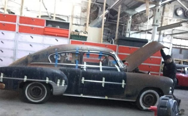This 1952 Chevrolet Fleetline has been in a barn in Europe for nearly fifty years! It can be found here on eBay U.K. with a buy-it-now price of £4,700 which is around $6,150 USD. The car is located in Leeds, United Kingdom, and the car has apparently been overseas since at least the early 1970’s.