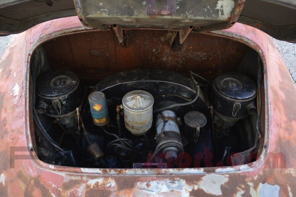 It is good to see that a car in this condition does still have an engine in it. The seller notes that it is not the original engine, but an engine from a later model 356A. They do not specify if it runs or not, but it is highly unlikely. A transmission is not listed or noted if being there, but it is a manual based on the interior photos. There is a KMPH Speedometer keeping track of how fast the car will go, eventually.
