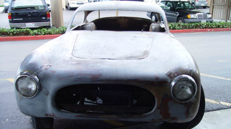 I think you might have to work on those headlight mounts! The story of the Allied/Atlas is explained in much detail on Geoff Hacker’s wonderful website Forgotten Fiberglass–apparently they made about 50 bodies over time, and the molds were actually taken from a Cisitalia surreptitiously when it was in the famous George Barris’s shop! There’s a cool period brochure here. Naturally, you’ll have a lot of work on your hands, because it’s hard to tell if the car was ever finished or not. There’s certainly a lot of detail work missing. The shop that was originally going to restore the car is now selling it for the owner.