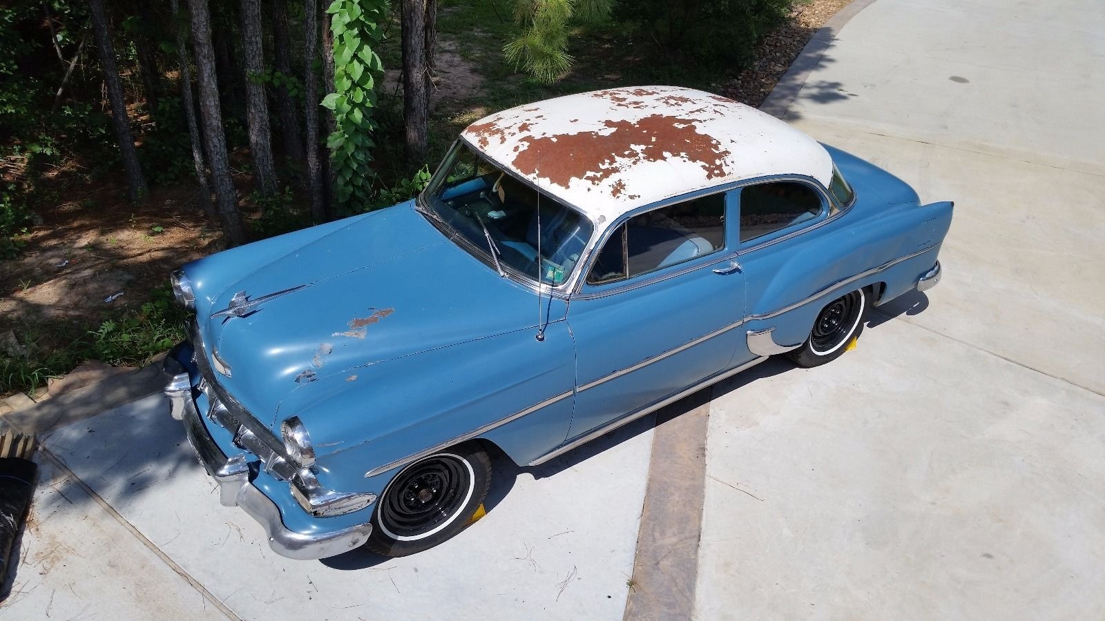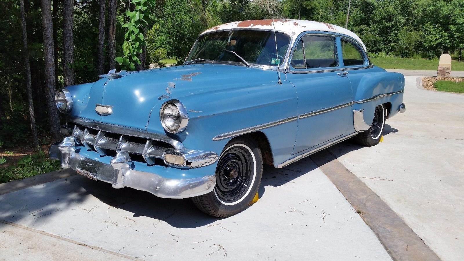 I dropped a 350/350 hp with a 350 TH, Mustang II front, Maverick rear end power brakes in my ’54 and my (now X) wife used it as a grocery getter. Yes, I put seat belts in to keep the younguns’ safe. She spent more time in the store than getting there and back home again. Yee Haa. The new owner drove it home from Georgia, repainted it black and now drives it around in South Dakota. Sweet ride it was.