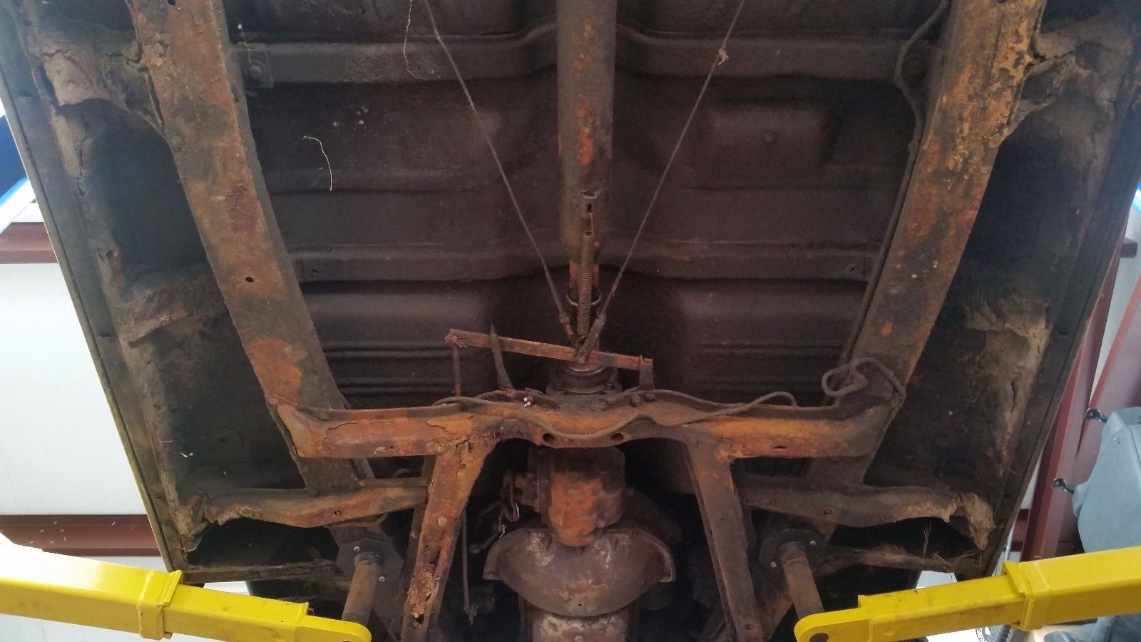 Here’s the frame on the seller’s lift. As you can see, there’s some corrosion to deal with.