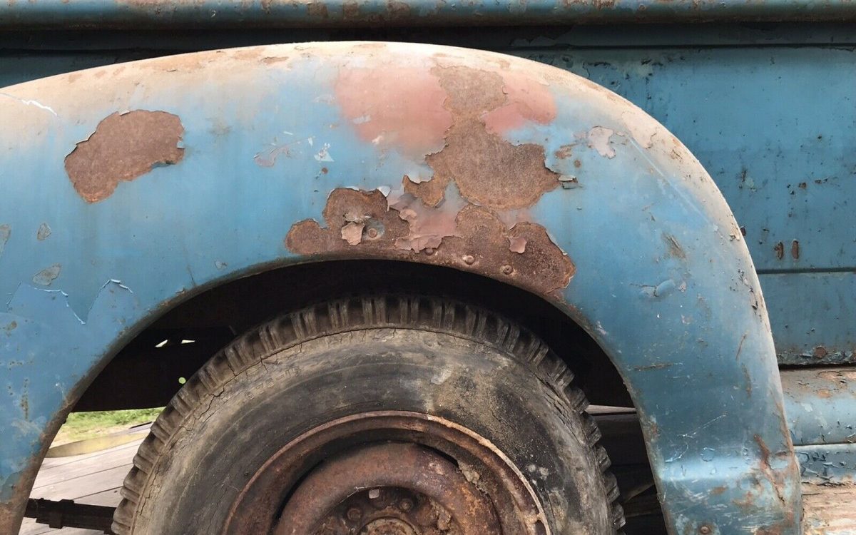 This looks like the worst of the rust (at least from the photos provided in the ad). You can see the rear fender has either been riveted together at some point, or those are the remnants of slide hammer pins. Either way, when you combine the rust with the cracked and peeling paint, it will need a little TLC to look better.