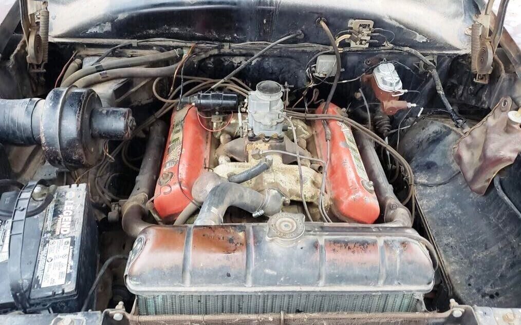 If original, this 239 cid (3.9L) first-year Y-block V8 makes 130 HP, more than the outgoing “flattie.” That interesting wraparound front exhaust crossover makes this V8 hot in more ways than one. A newer dual-circuit brake master cylinder should provide improved stopping power and safety.
