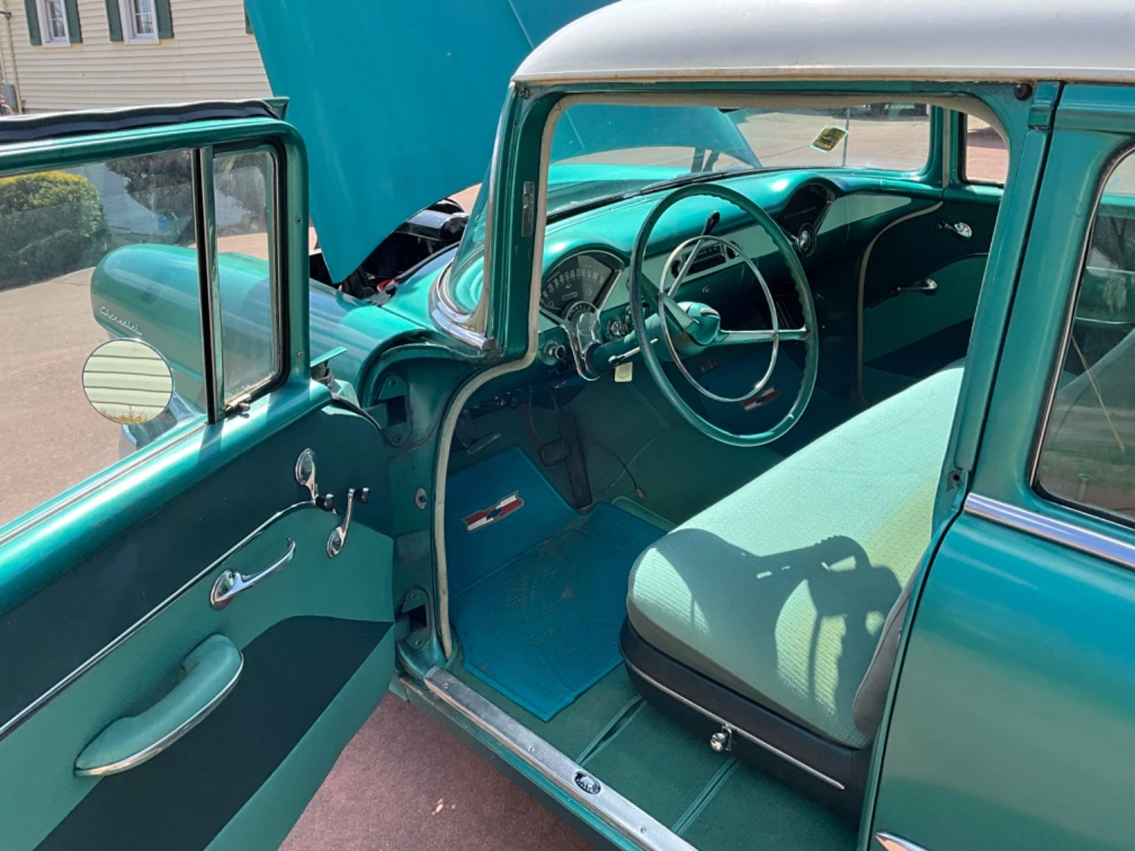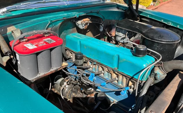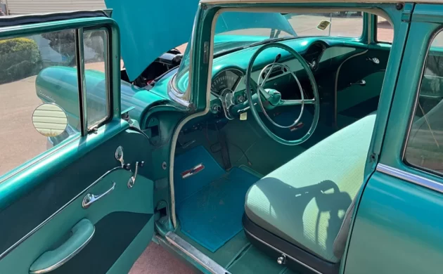 The Two-Ten was Chevy’s midline model, between the One-Fifty and the Bel Air. It had a little fancier trim than the base model, but it sold in far greater numbers. In fact, the Two-Ten Sedan was the second best selling Chevy in 1955, with 340,222 finding homes, just behind the more expensive Bel Air Sedan at 366,293 units sold. The seller is clear that this is an extremely solid car with “driver-quality” paint. The interior is nice, and it appears that the upholstery is green cloth as the trim tag says it should be, but it’s probably seen some new upholstery over the past 70 years. Some dash lights need to be replaced and the headliner needs cleaning or replacement if the new owner wants to take those last steps toward having a really nice cabin.